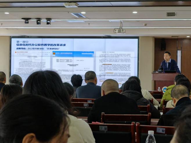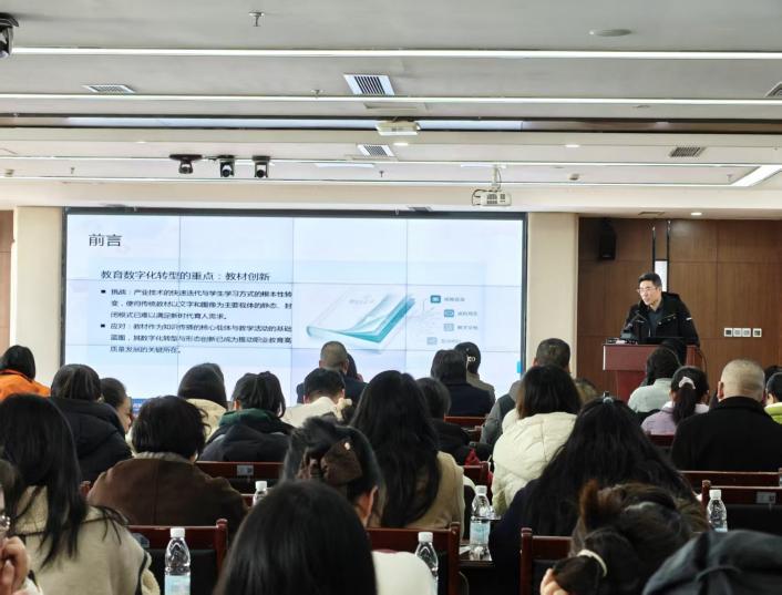 五位专家相继开展精彩的培训讲座,国家“万人计划”教学名师武春岭教授从国家教学成果奖的高度,以《AI时代计算机专业教学改革的系统性创新》阐释新背景下计算机专业改革的方向,邓仕川校长结合国规教材开发,以《数字化转型下的国规教材建设与教学应用》深度解读“岗课赛证”融通下的新形态教材建设;全国职业院校技能大赛资深专家库波教授的报告围绕国家级赛项标准,以《AI背景下的技能大赛新趋势与赛教融合策略》分析AI趋势如何引领赛题设计与教学改革;李俊杰老师聚焦一线课堂,以《办公软件智慧教学:工具、路径与课堂实践》演示AI工具如何重塑备课、授课与评价的全过程;国家级优秀教材策划专家王艳丽以《AI赋能职业教育新形态与数字教材建设的探索与实践》详细分析教材评价与审核要点。五位专家的讲座内容充实、案例丰富、精彩纷呈,带给参会人员启迪和思考。